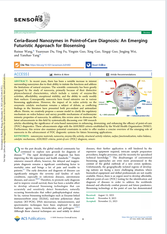 生物与化学工程学院王瑞雪在《ACS Sensors》发表论文
